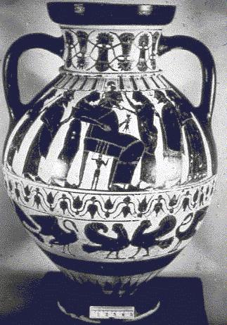obliquely upward, the hand grasping a thunderbolt. The god has