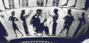 other and extended fingers, Hermes, identified by the petasos,