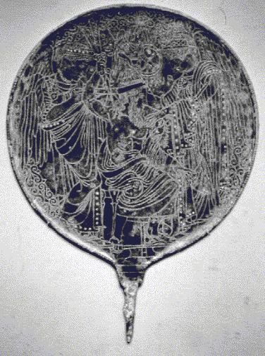 inscribed: ETHAUSVA. On the left side stands a goddess, the