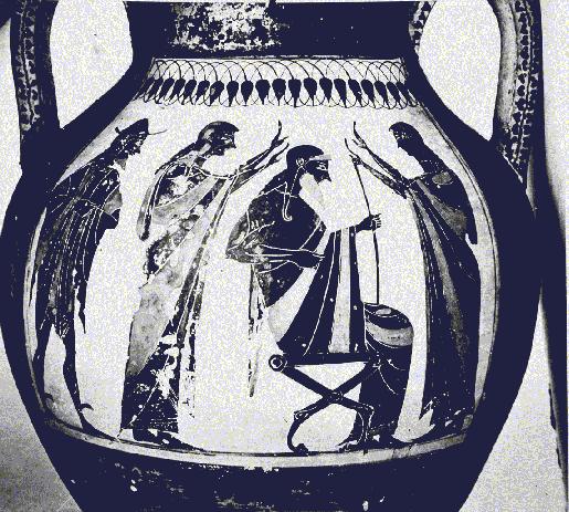 Hermes can be identified by the petasos and the endromides. But what to think about the